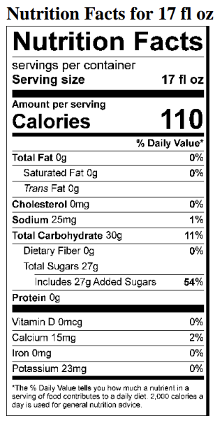 Ingredients: Water, Sugar, Citric Acid, Natural Flavors, Aspartame*, FD&C Yellow #5, Sodium Benzoate and Potassium Sorbate (as preservatives), Acesulfame Potassium and FD&C Blue #1.